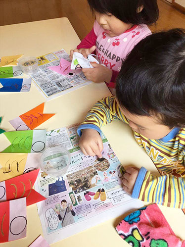 室内の活動においては、指先をたくさん使う活動を多く取り入れ、脳への刺激を大切にした保育を心がけています。